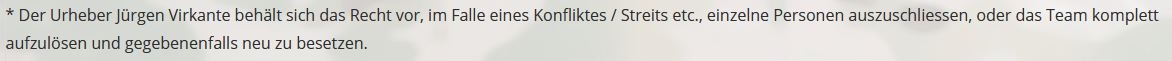 Die Gründer des Teams sind von dieser Regelung ausgeschlossen und können nur freiwillig das Team verlassen. (Ausnahme, siehe *)